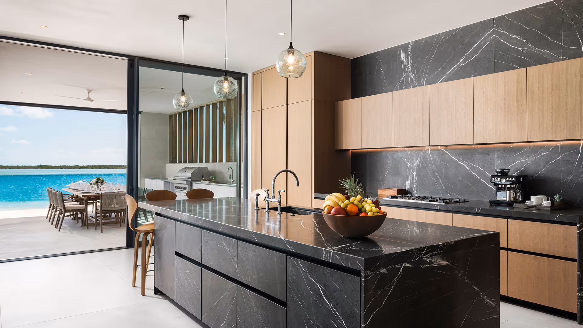 Incorporating a heated infinity pool, terrace and sundeck, along with bbq and Chef’s kitchen for island entertaining, Emerald Breeze is a haven of quiet sophistication inside and out. Emerald Breeze offers the full Island House suite of amenities alongside kayaks and water sports equipment for guest use.