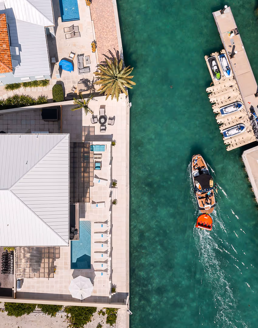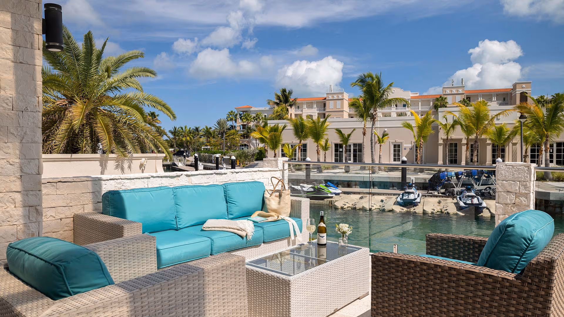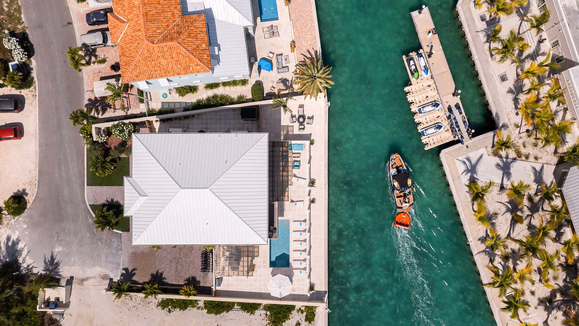 Sitting directly on the Leeward Marina, opposite Mangrove Cay and with views of the clear island waters, the property benefits from multiple outdoor vantage points from which to relax and unwind. A private dock is also on hand for ocean adventurers to find safe harbour after a day on the water.