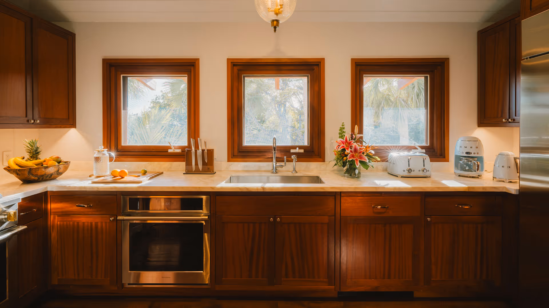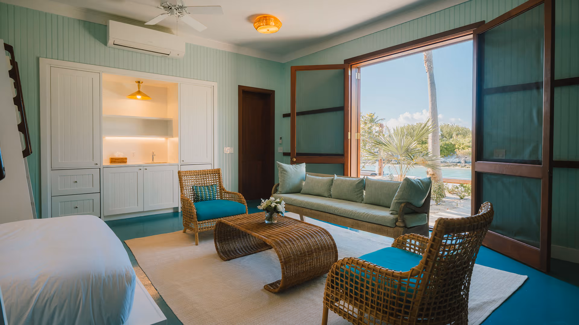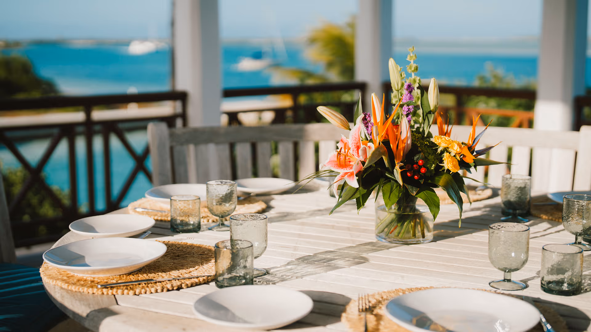 Step outside the main villa and a traditional gazebo with dining area, bbq, grill and bar are fully equipped for island entertaining, along with a well-appointed rooftop deck blessed with impeccable views of the pristine Cay beyond for the ultimate in sunset cocktails.