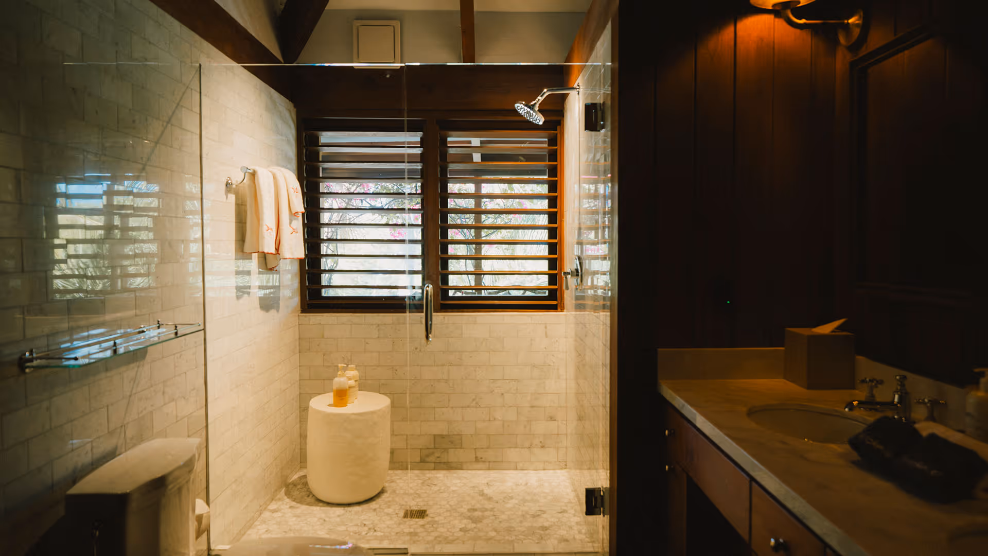 A 360-degree wraparound veranda at canopy level brings the verdant outdoors indoors, allowing the refreshing trade winds to cool the villa interior, whilst the sleek simplicity of the serene infinity pool beckons below. From there, follow a multitude of winding trails through carefully curated gardens, past mature palms and scented tropical planting to the shoreline, the golden hues of The Catch’s private beach and its inviting azure waters mere steps away.